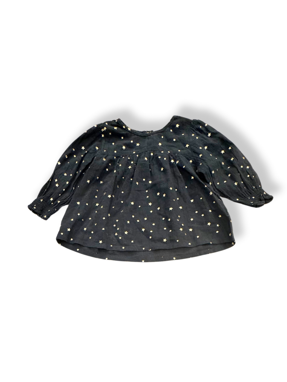 Leinenbluse schwarz goldene Sternchen Gr. 74