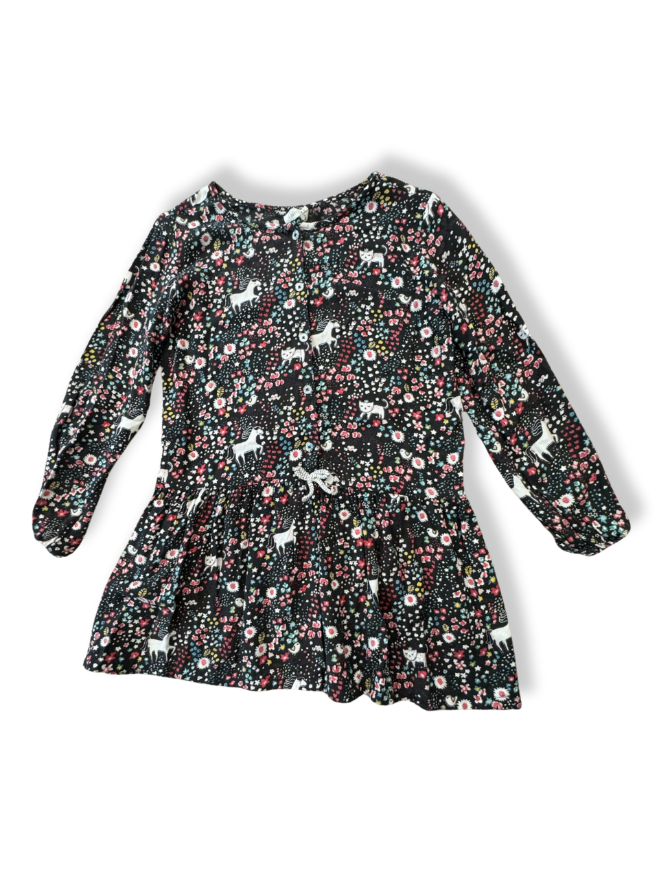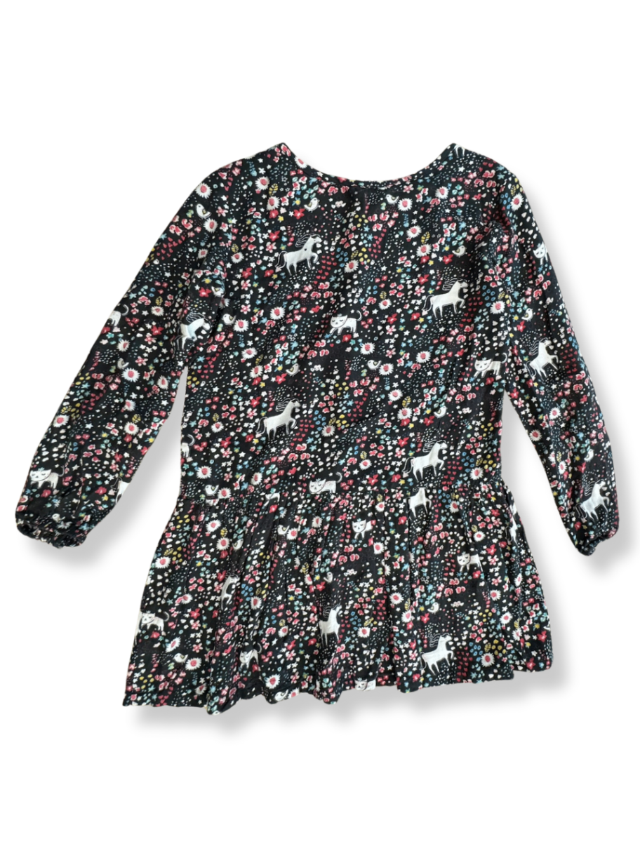 Kleid Schwarz mit Einhörnern Gr.7-8 | Sfera